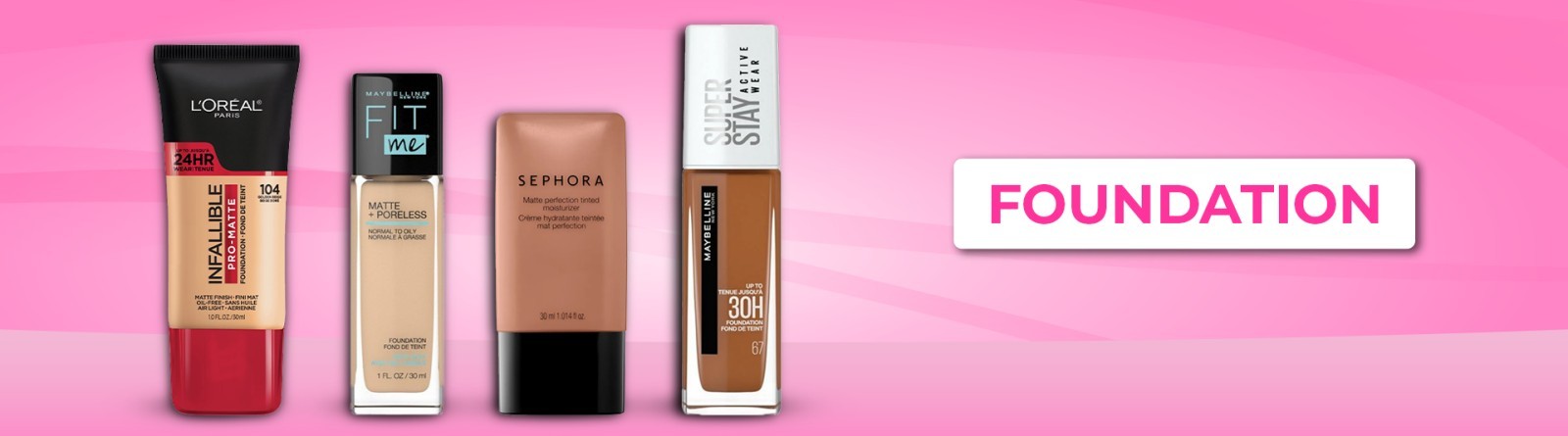 varieties of foundation such as Maybelline, Milani, LA Girl, E.L.F, Neutrogena